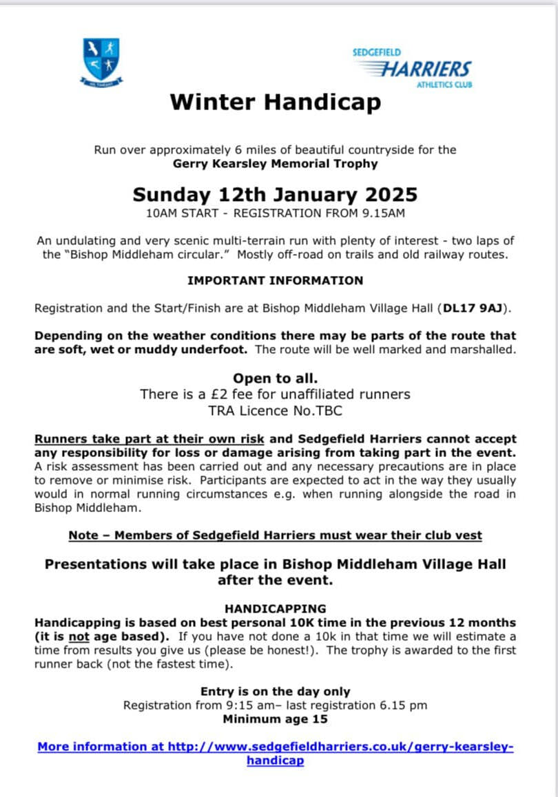 | 9671 | 2025 Jan 26 Sun | Run Northumberland Kirkharle Shepherds Trail Half and Kirkharle Trail 10K half marathon, 10K